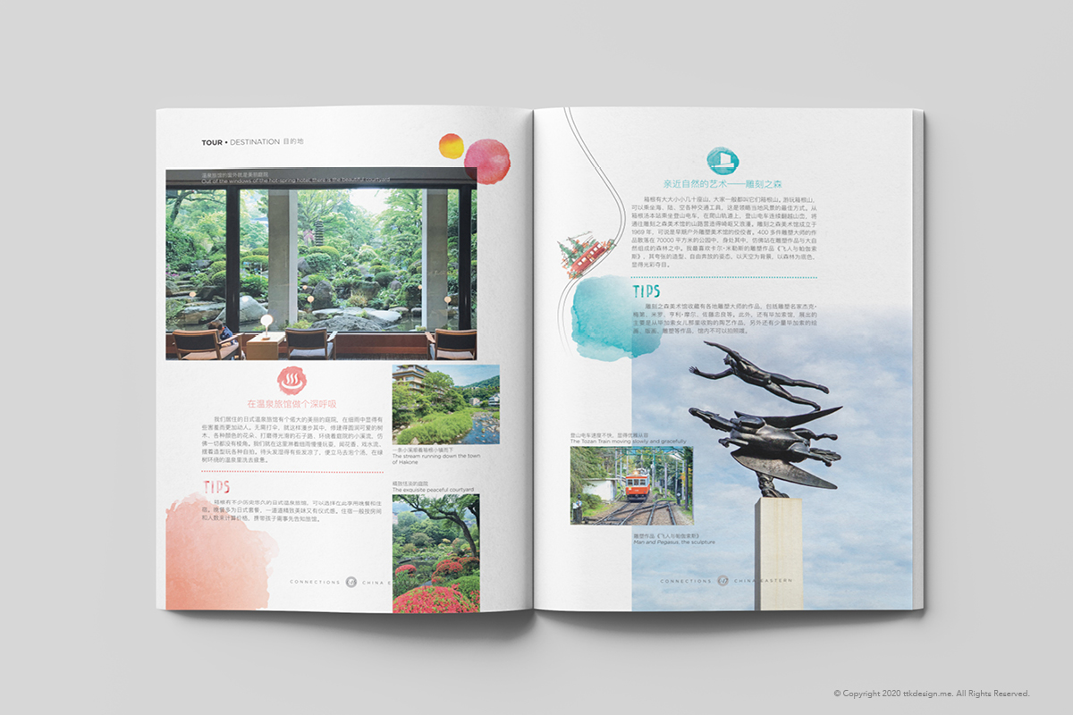China Eastern Airlines is a major Chinese airline operating international, domestic and regional routes. It based in Shanghai. The designs shown here are part of the inflight magazine and shopping guide.